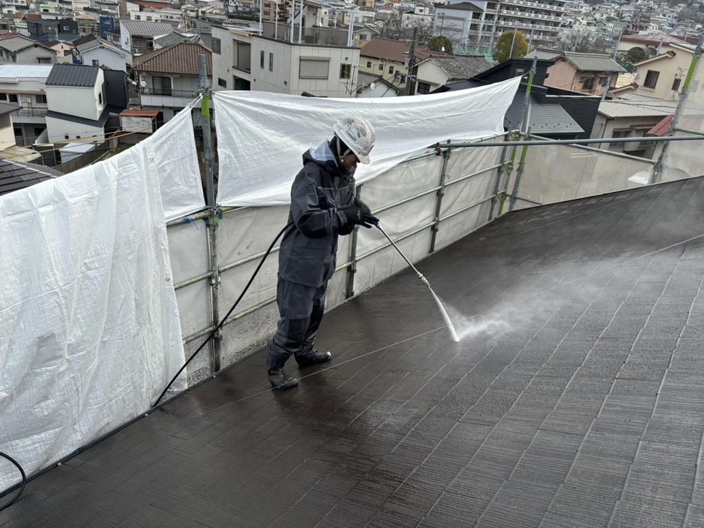 屋根のカラーベストはかなり劣化が進んでいたので、下塗りを何度も塗ることで長持ちする施工となります。