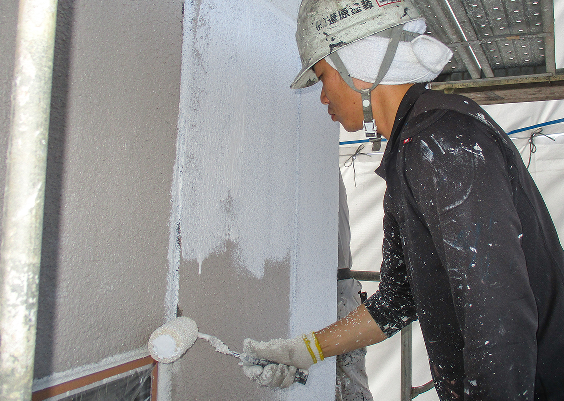 塗装の密着性を高めるため、建物の外壁に最適な下塗り材を使用します。