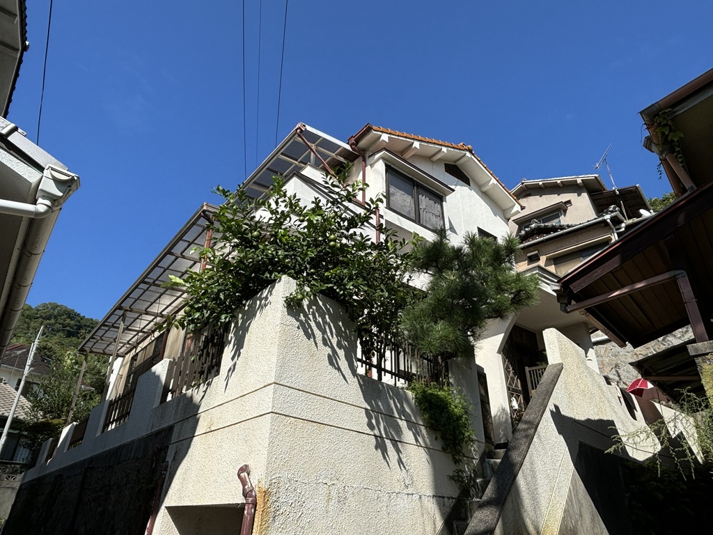 築30年のモルタル外壁と塀の塗装及び雨樋交換工事|広島県呉市