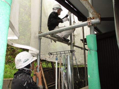 施工状況 足場組が完了し、続いて瓦棒屋根の既存塗膜が浮いた部分をしっかり剥がしていきます。 この下地処理作業は、一見地味で手間のかかる作業ですがきれいで長持ちする仕上がりのために非常に重要な作業です。 梅雨が明けて気温も...